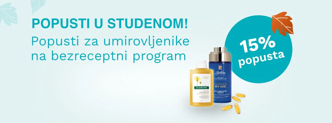 | POPUST ZA UMIROVLJENIKE NA VEĆI DIO BEZRECEPTNOG PROGRAMA *Popust se ne odnosi na lijekove na recept, na lijekove bez recepta, na dječju hranu. **Popusti se ne zbrajaju. | 13.11. i 27.11. | 15% |